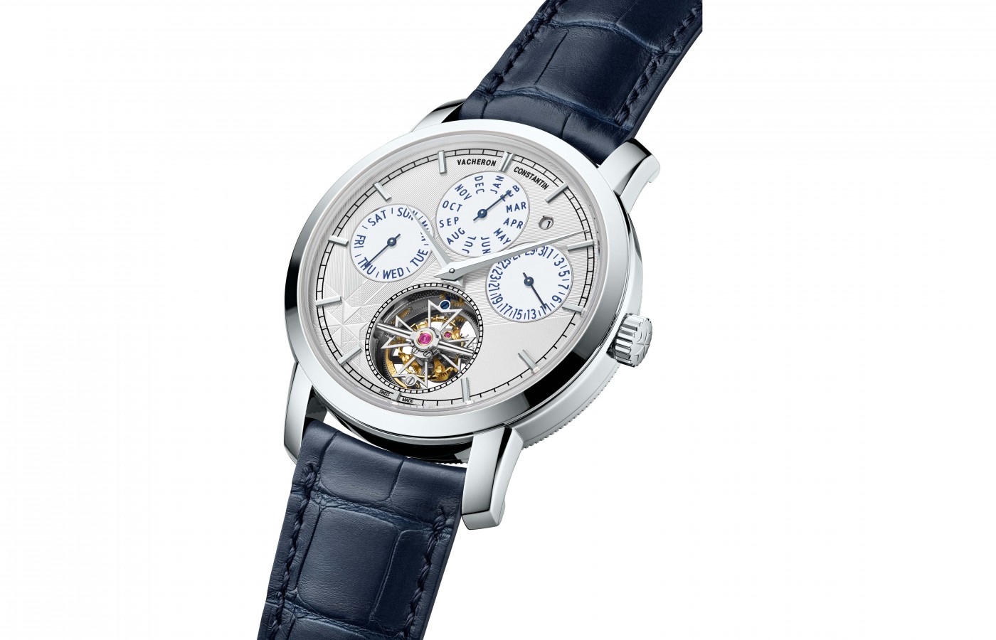 Its patented safety-drive system enables the perpetual calendar to be adjusted forward or backward without risk of damage — a feature that demonstrates Vacheron Constantin’s mastery in movement engineering. The peripheral rotor design provides an impressive 72-hour power reserve while keeping the case elegant and slim.